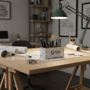 Porta lapices en forma de contenedor
